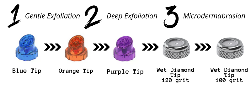 HydraFacial offers tailored treatments for different skin types and concerns, making it highly versatile. At your consultation, your practitioner will discuss your skin type and skin concerns to address with your Hydrafacial treatment. The range of Hydrafacial tips attach to the wand and give your skin the right amount of ‘aggression’ due to their varying grit strength from 120 to 100. The NEW WET DIAMOND TIP enhances the exfoliation comparible to microdermabrasion.